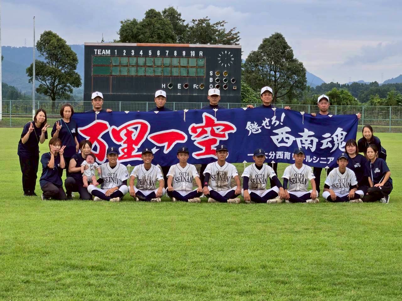 第26期生 お別れ試合 令和7年9月27日(土)26期生のお別れ試合を開催しました。毎年、高校3年生になった西南OBの選手に参加いただき 『ガチ』の真剣勝負をします。今年は23期生との戦いとなりました。結果は10-12で23期生の勝利でした。 先輩の意地を見せました!ギリギリ感満載ですが・・・保護者との対戦もあり26期生として最後の試合となりましたが 良い思い出となりました。23期生の皆さんありがとうございました!